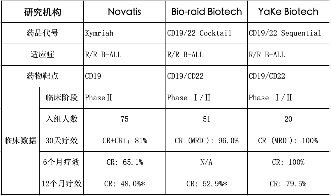 表一、比较针对CD22靶标CAR-T细胞治疗的國(guó)际前沿临床研究结果: