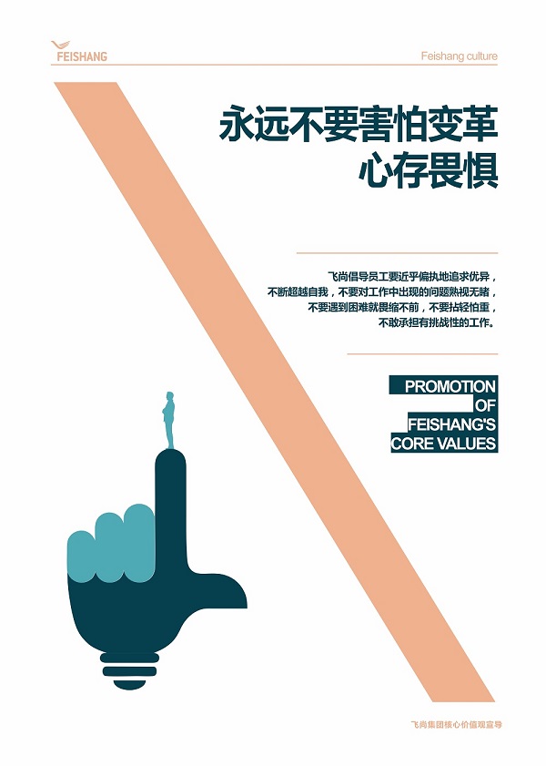 在飞尚集团企业文(wén)化體(tǐ)系中(zhōng),如果说使命宗旨、企业愿景是企业战略层面的事,意境太过高遠(yuǎn),那么核心价值观则与每一个人息息相关,因為(wèi)它直接关系到我们的一言、一行,體(tǐ)现為(wèi)我们做人、做事的方式。尤其是核心价值观行為(wèi)指引,更為(wèi)我们提供了清晰的标准、规范、底線(xiàn),它帮助我们判断在公(gōng)司应该支持什么、赞赏什么、反对什么、批判什么。